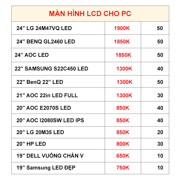 Lựa chọn Cường Phát để có bảng giá linh kiện máy tính tốt nhất Ngoài ra, bạn có thể gọi ngay đến hotline để được tư vấn và hỗ trợ cụ thể nhé. Đội ngũ nhân viên tại Thanh Lý Cường Phát với phong cách làm việc chuyên nghiệp, nhiệt tình sẽ giải đáp mọi thắc mắc của bạn cũng như cung cáp thông tin về bảng giá linh kiện máy tính thật cụ thể, mang đến sự hài lòng tuyệt đối với lựa chọn cho quý khách hàng.